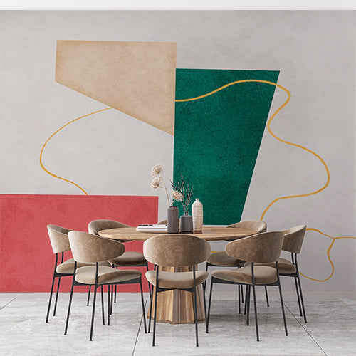 Tapeta abstrakcyjna z odważnymi blokami kolorów i złotymi liniami