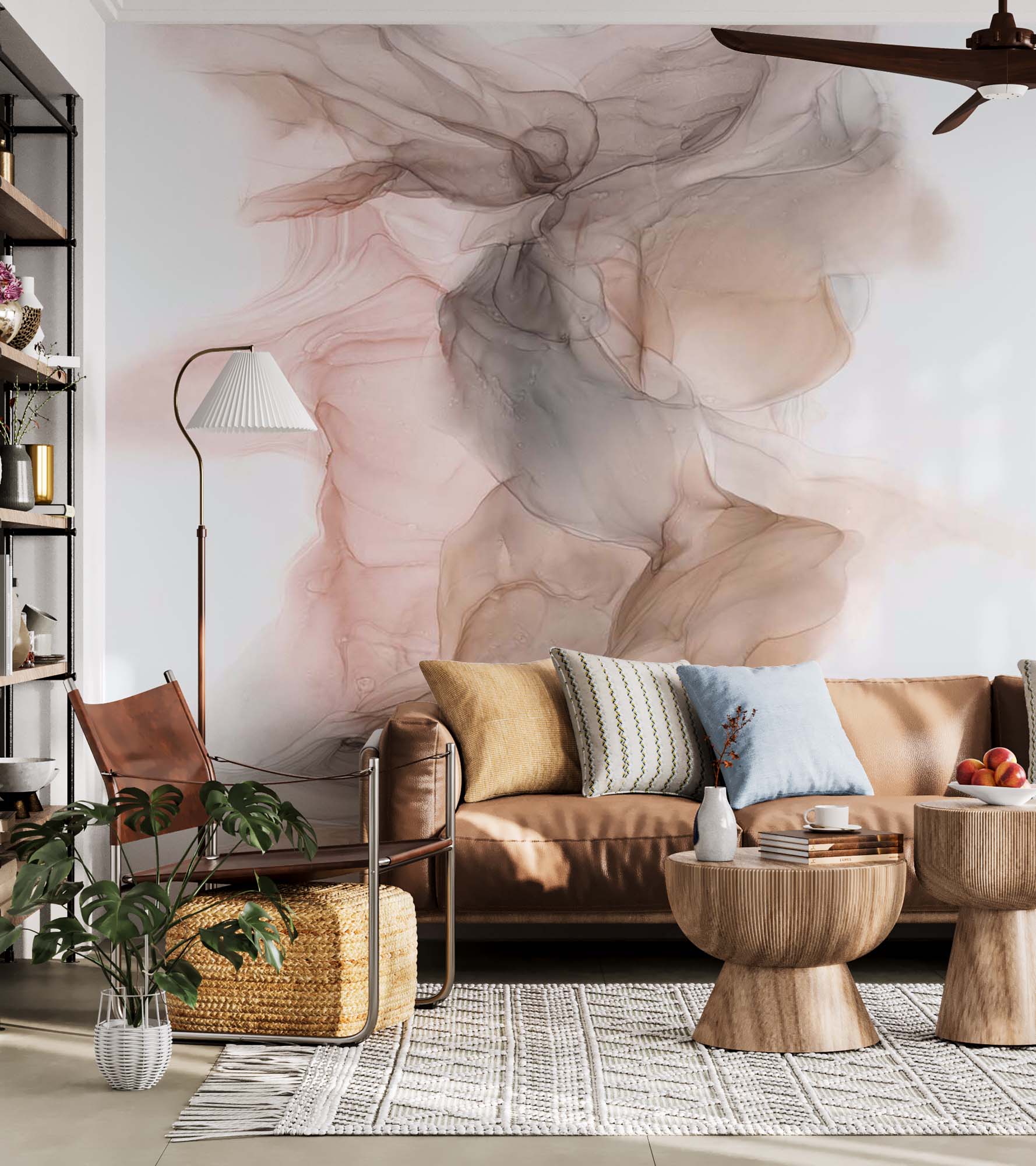 Abstrakcyjna tapeta z płynnym atramentem w kolorze beżowego dymu