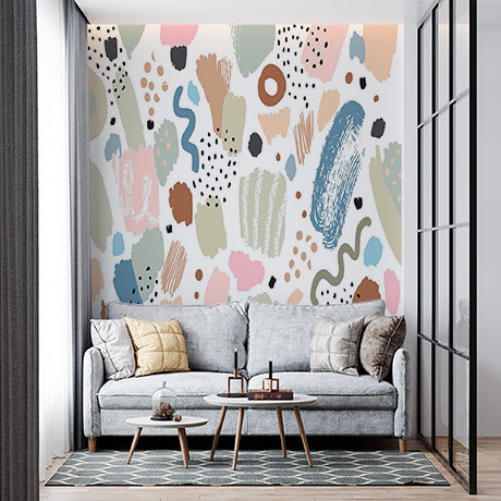 Abstrakcyjne kolorowe pociągnięcia pędzlem i kształty Tapeta ścienna