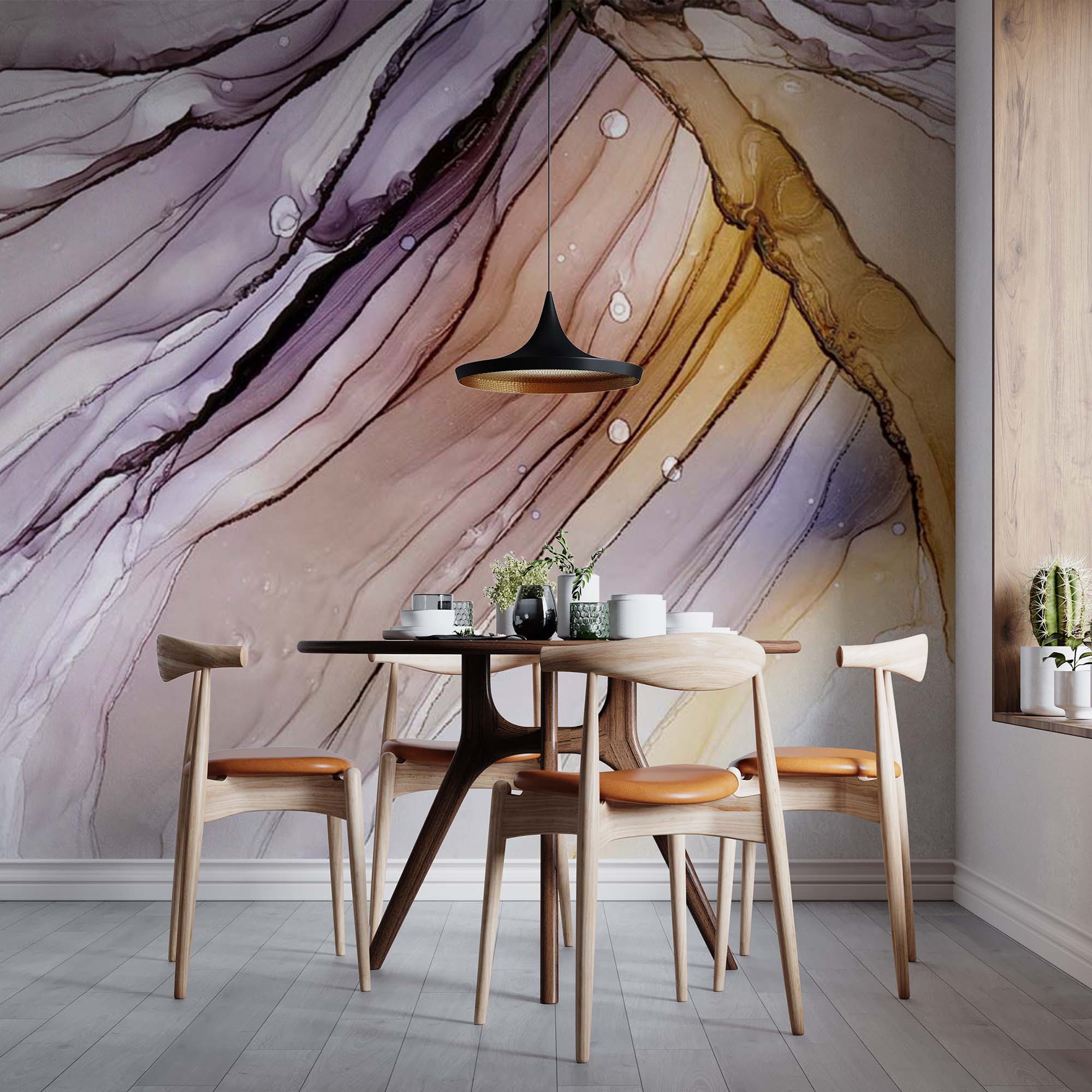 Abstrakcyjna płynna tapeta na ścianę Fioletowy żółty alkoholowy atrament Tapeta