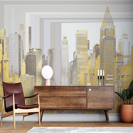 Abstrakcyjna fototapeta ze złotym pejzażem miejskim - nowoczesna miejska panorama