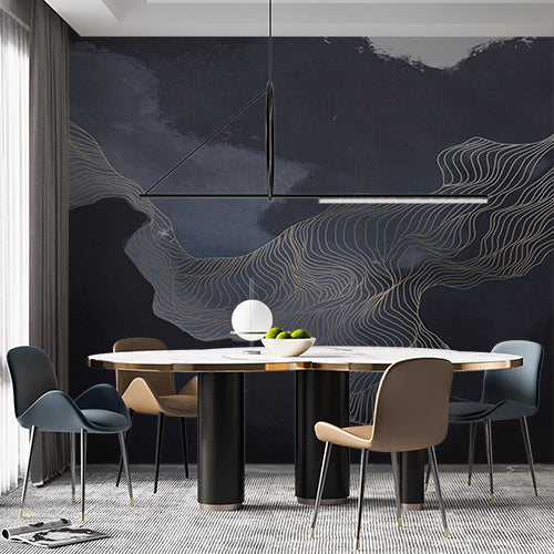 Abstrakcyjna tapeta z falami oceanu ze złotą grafiką liniową na ciemnym tle