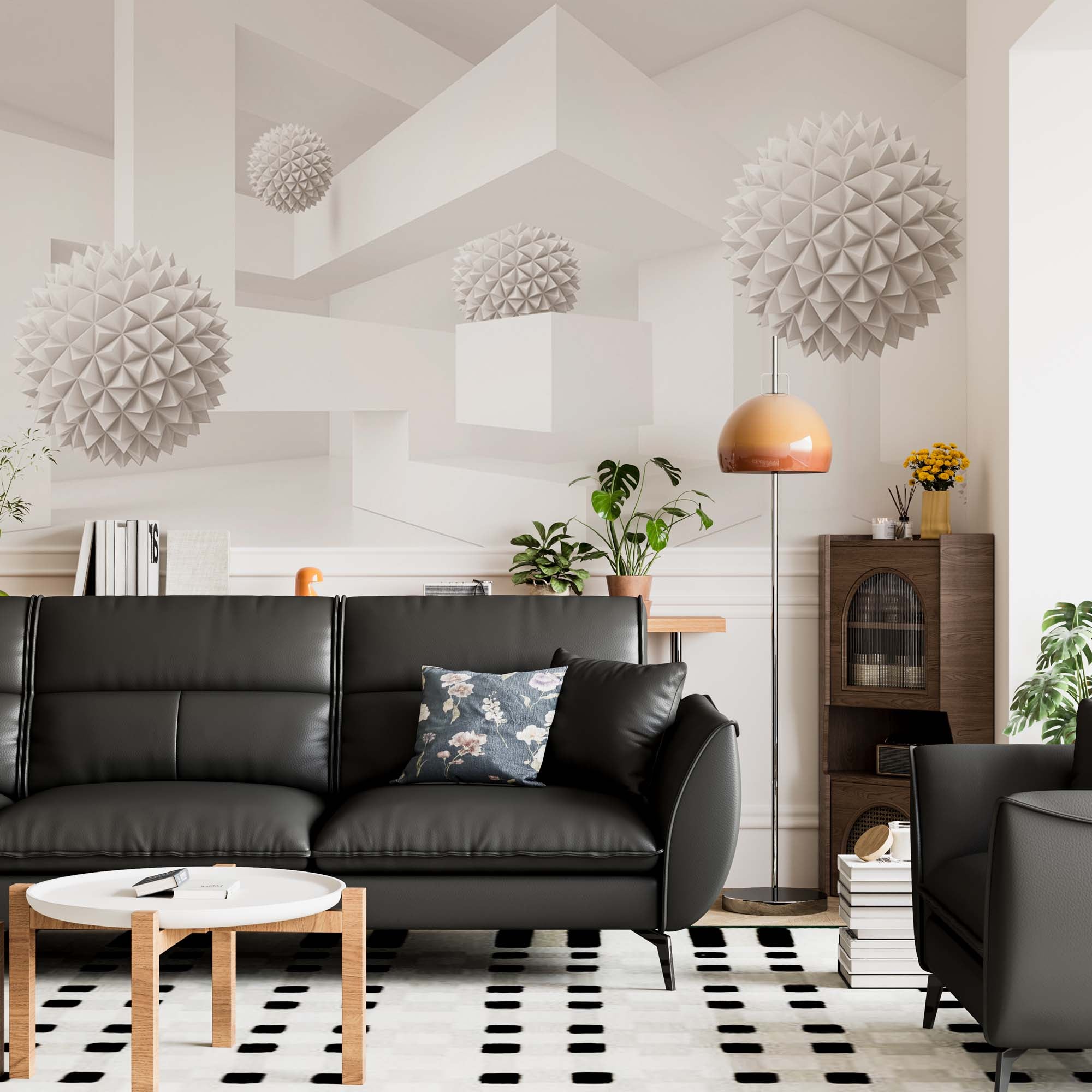 Abstrakcyjna fototapeta Kolczaste kulki z białą teksturą