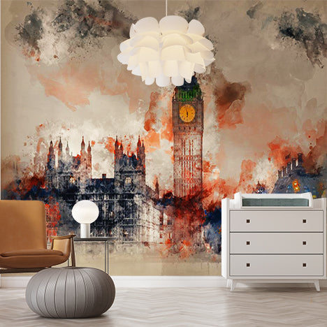 Abstrakcyjna akwarela przedstawiająca Big Bena i Westminster w Londynie Fototapety