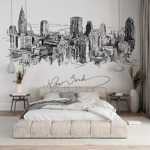 Artystyczny szkic fototapet z panoramą Nowego Jorku