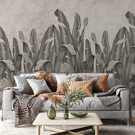 Tapeta z freskiem w kształcie liścia bananowca Fototapeta z egzotycznymi liśćmi