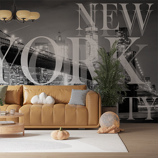 Czarno-biała fototapeta z panoramą Nowego Jorku Tapeta Most Brookliński