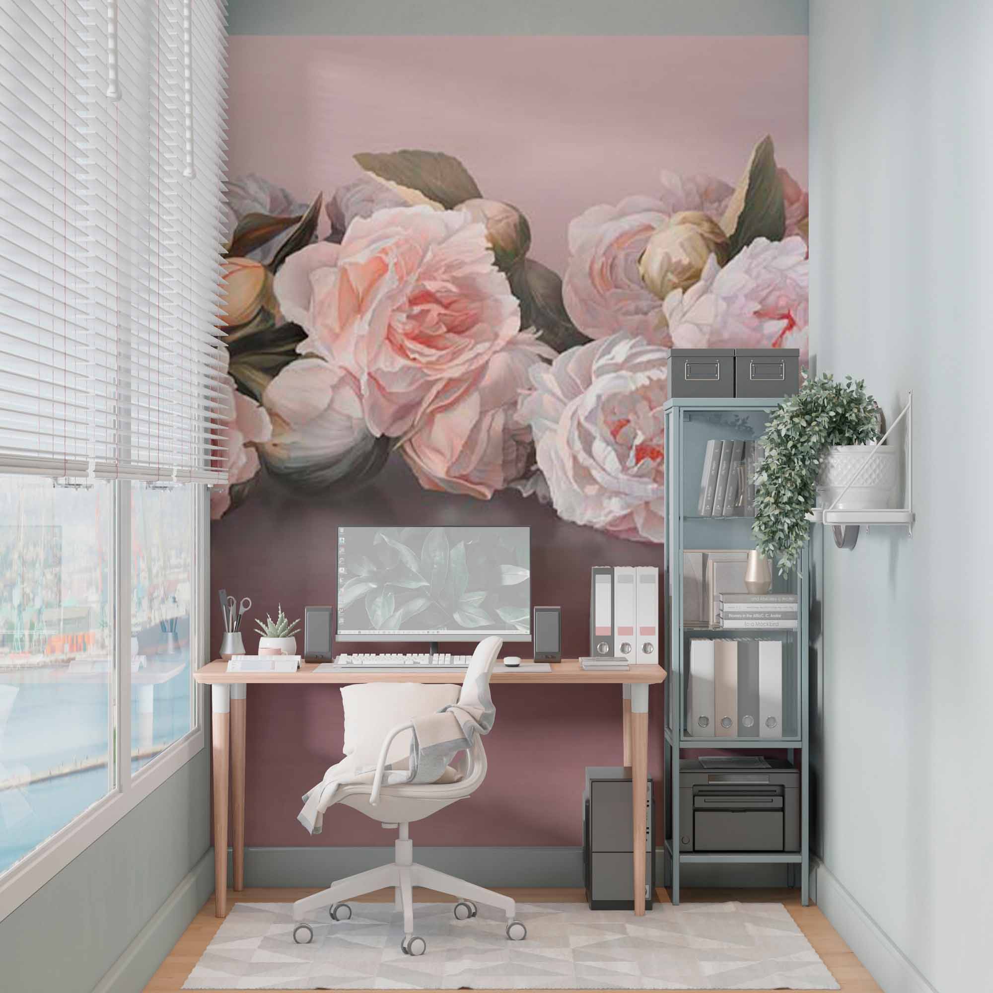 Kwitnąca różowa fototapeta Delikatne kwiaty Eleganckie tapety