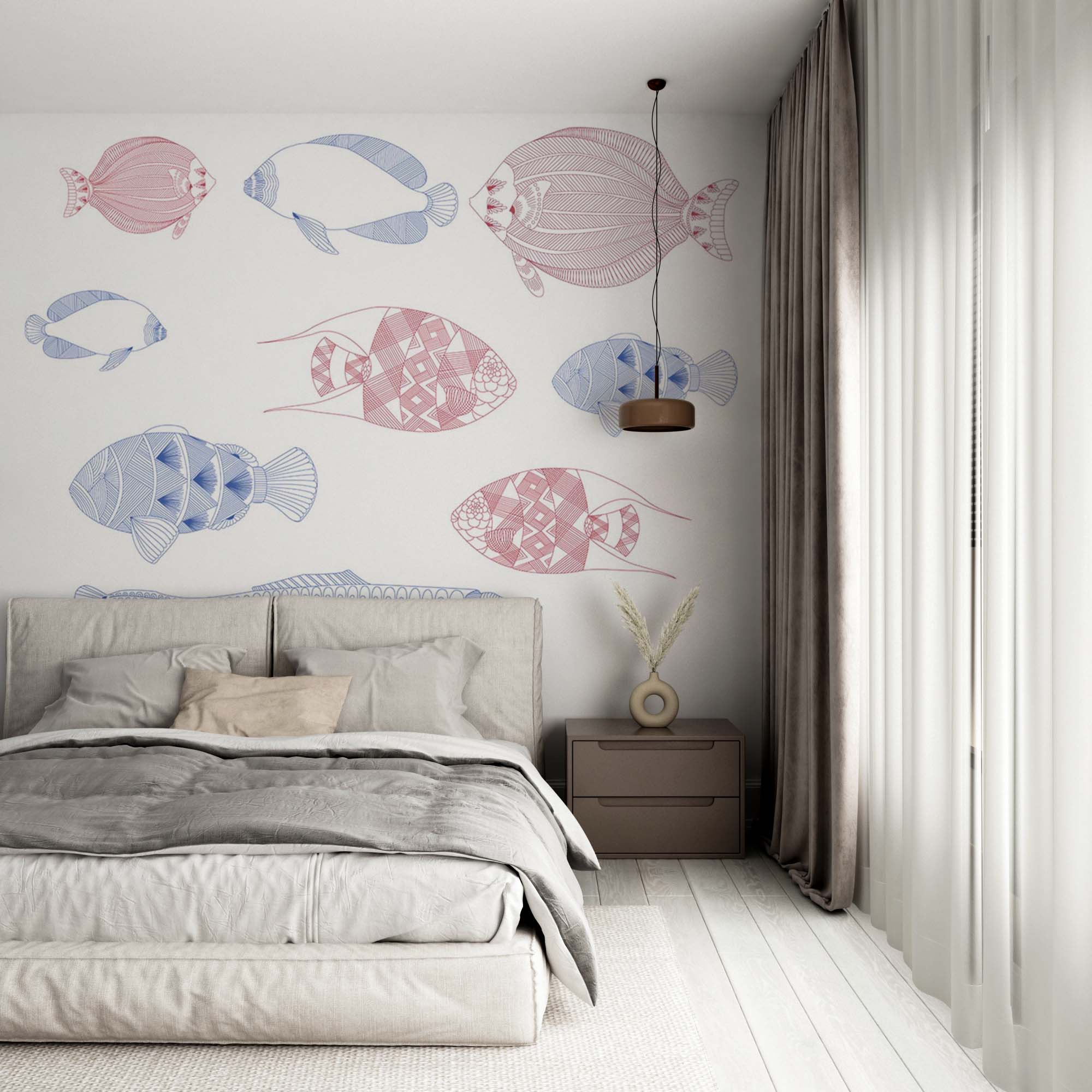 Niebieska i różowa fototapeta Ryby Skandynawska tapeta