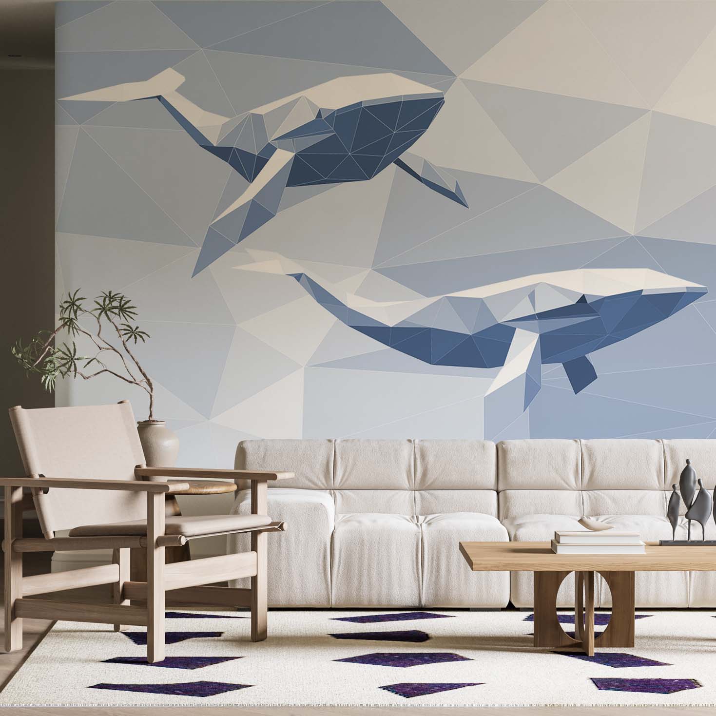 Tapeta z motywem geometrycznym płetwala błękitnego ze zwierzętami