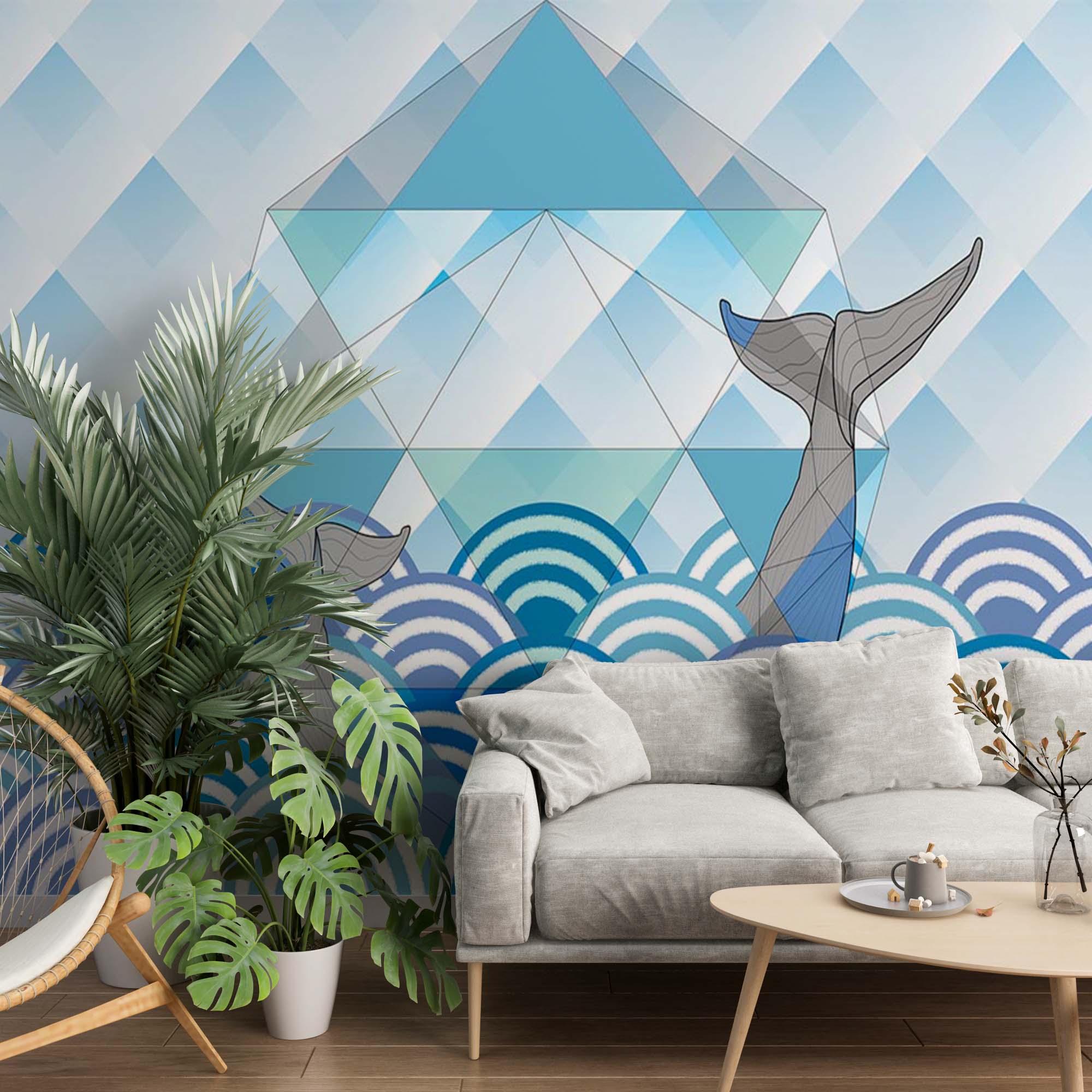 Tapeta z płetwalem błękitnym Geometryczna tapeta pod wodą
