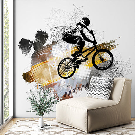 Tapeta ścienna BMX Freestyle - dynamiczny miejski projekt sportowy ze sztuką abstrakcyjną