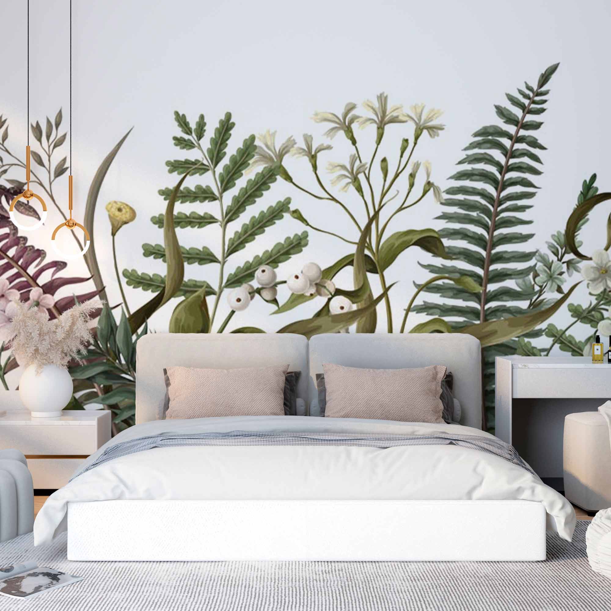 Tapeta botaniczna Białe kwiaty Jagody Tropikalna fototapeta