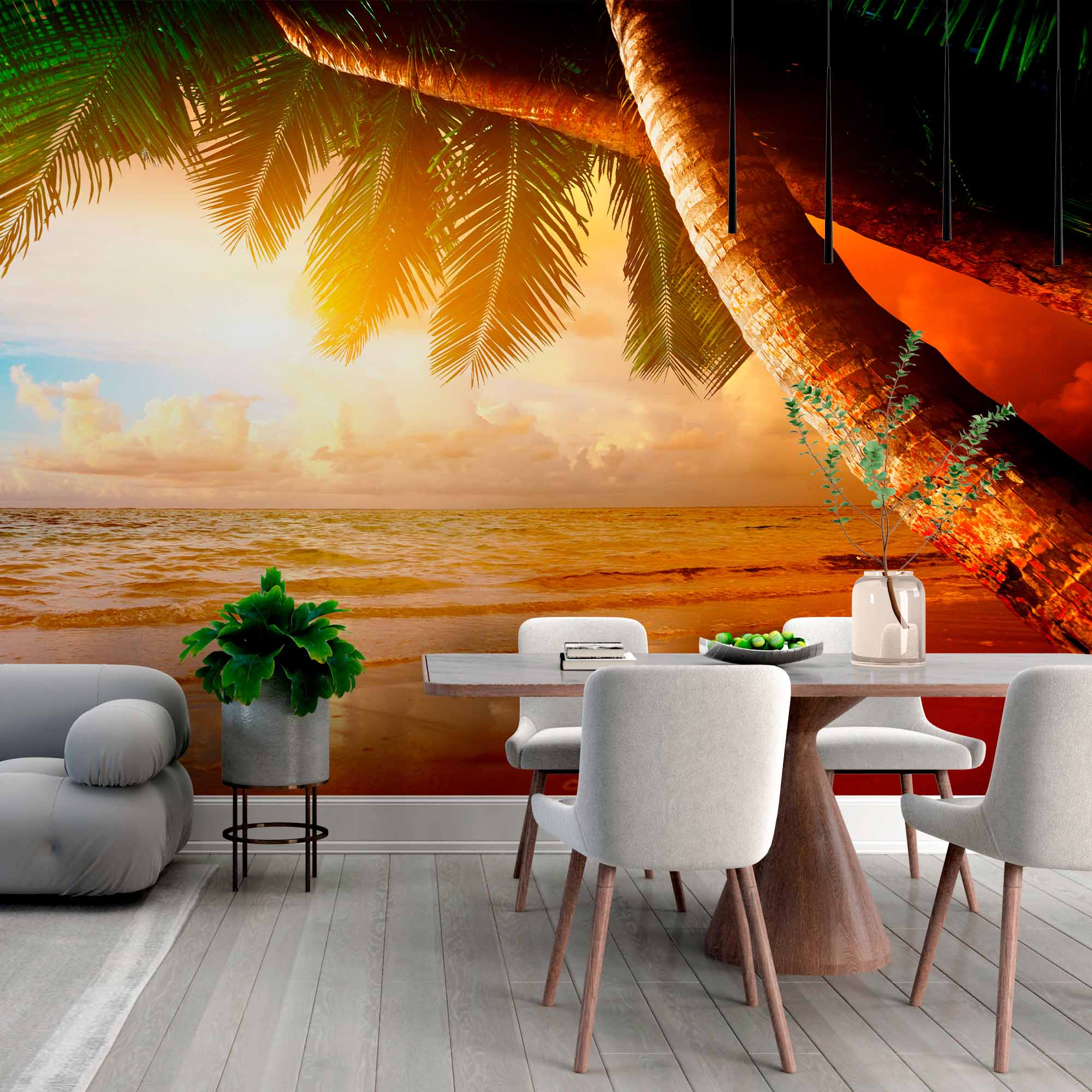 Zapierająca dech w piersiach fototapeta o zachodzie słońca na plaży