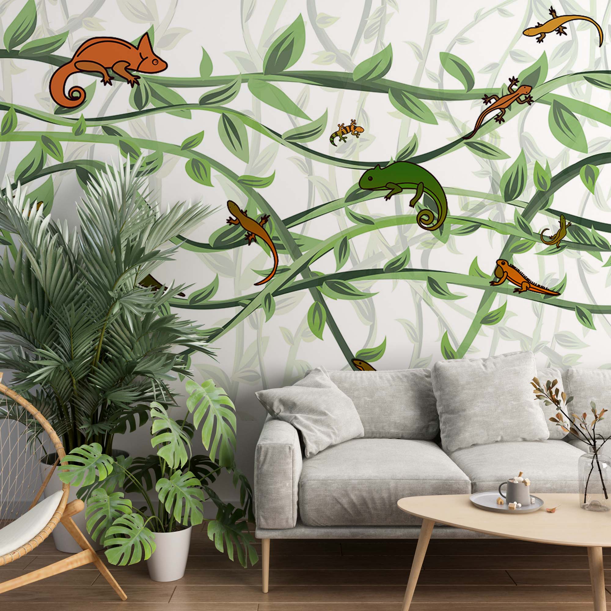 Kameleon i jaszczurka Tropikalny las Tapeta Zwierzęta Fototapeta