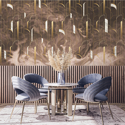 Tapeta ścienna w stylu Art Deco w kolorze ciemnoszarym i złotym - pionowe linie i łukowaty wzór