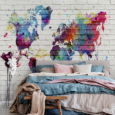 Kolorowa mapa świata Tapeta ścienna - artystyczny projekt rozprysków na cegle
