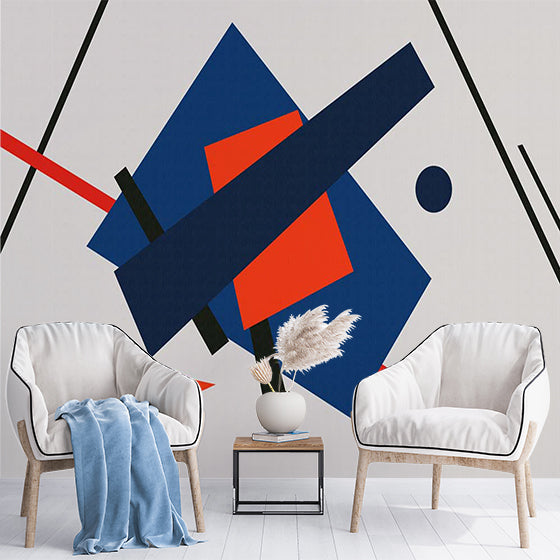 Tapeta ścienna o współczesnych abstrakcyjnych kształtach geometrycznych - nowoczesny projekt artystyczny w kolorze czerwonym, niebieskim i czarnym