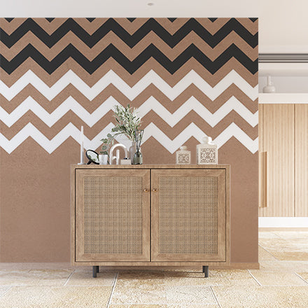 Współczesna tapeta ścienna w jodełkę - brązowy, czarny i biały wzór zygzaka