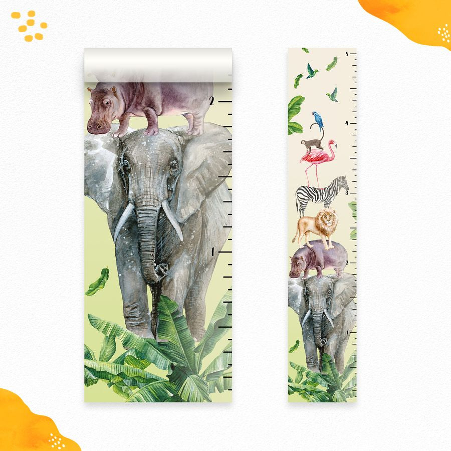 Miarki wzrostu dla dzieci Odklej i przyklej Zwierzęta z Safari — winylowe wykresy pomiarowe do dekoracji pokoju dziecięcego