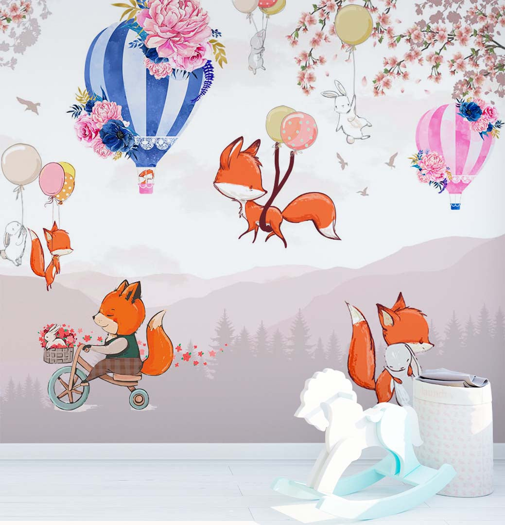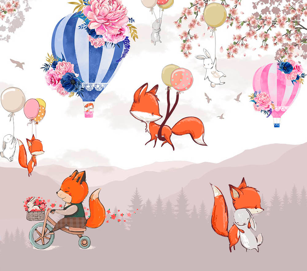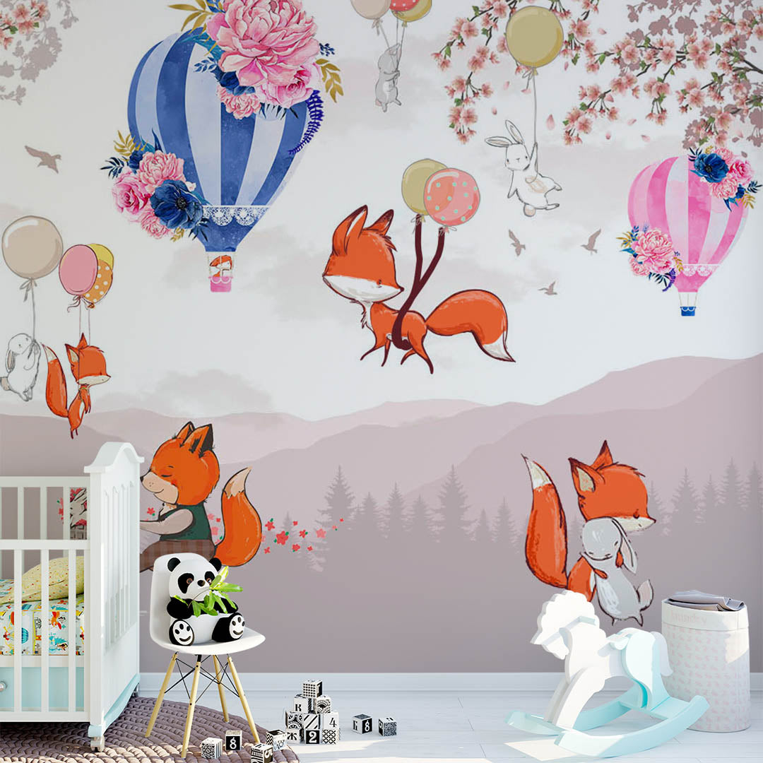 Niestandardowe fototapety dla dzieci góry balony powietrzne śliczne lisy kwiat wiśni piwonia kwiaty tapety dla dzieci