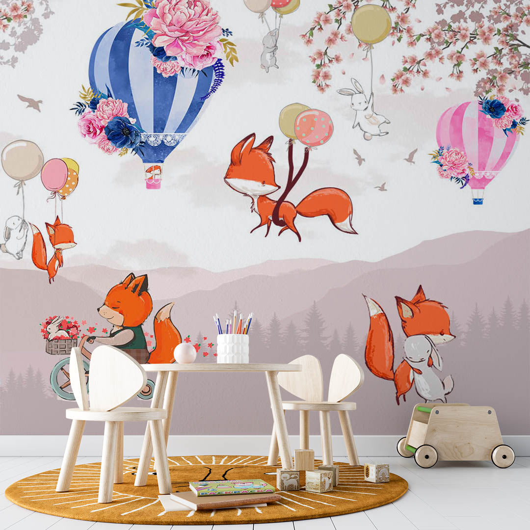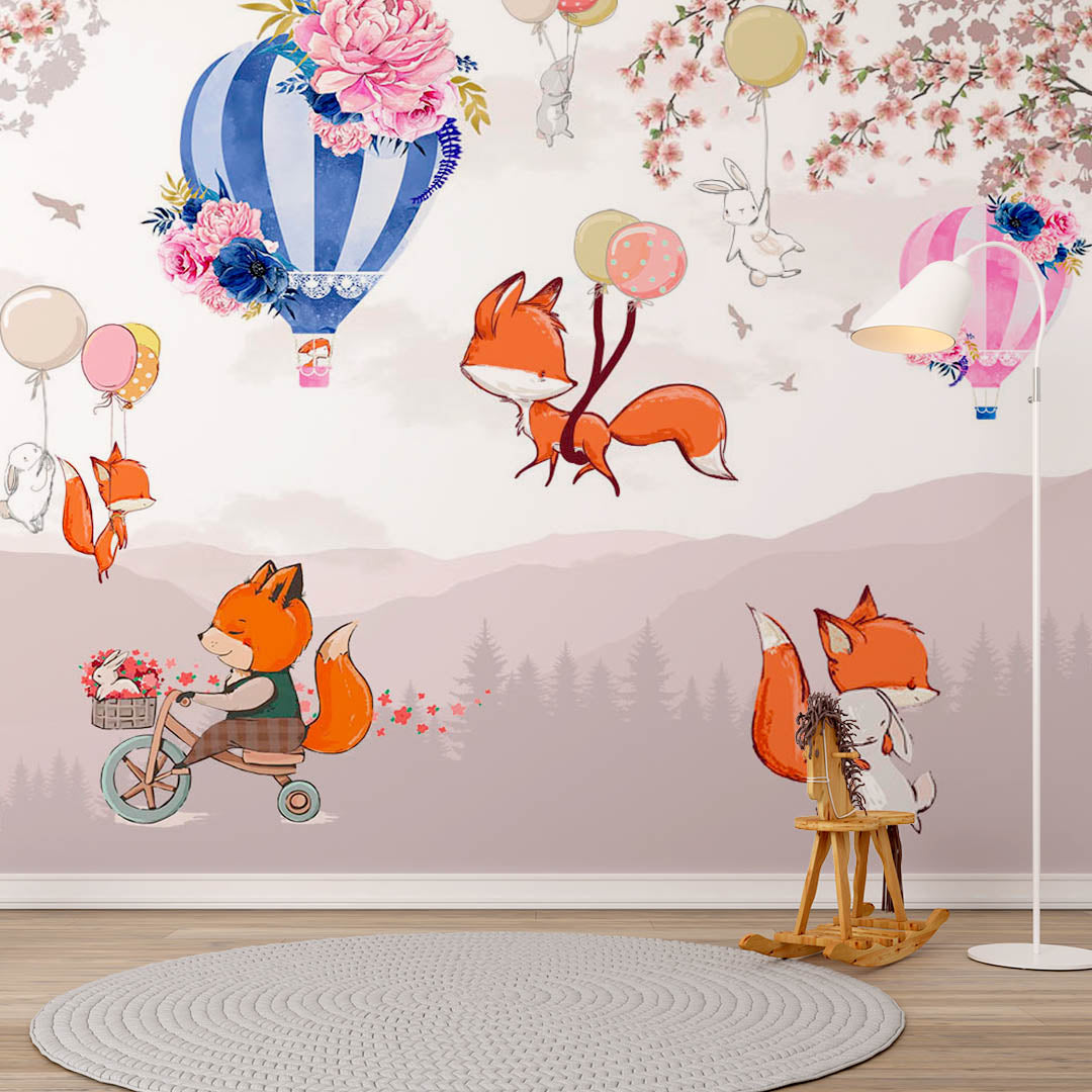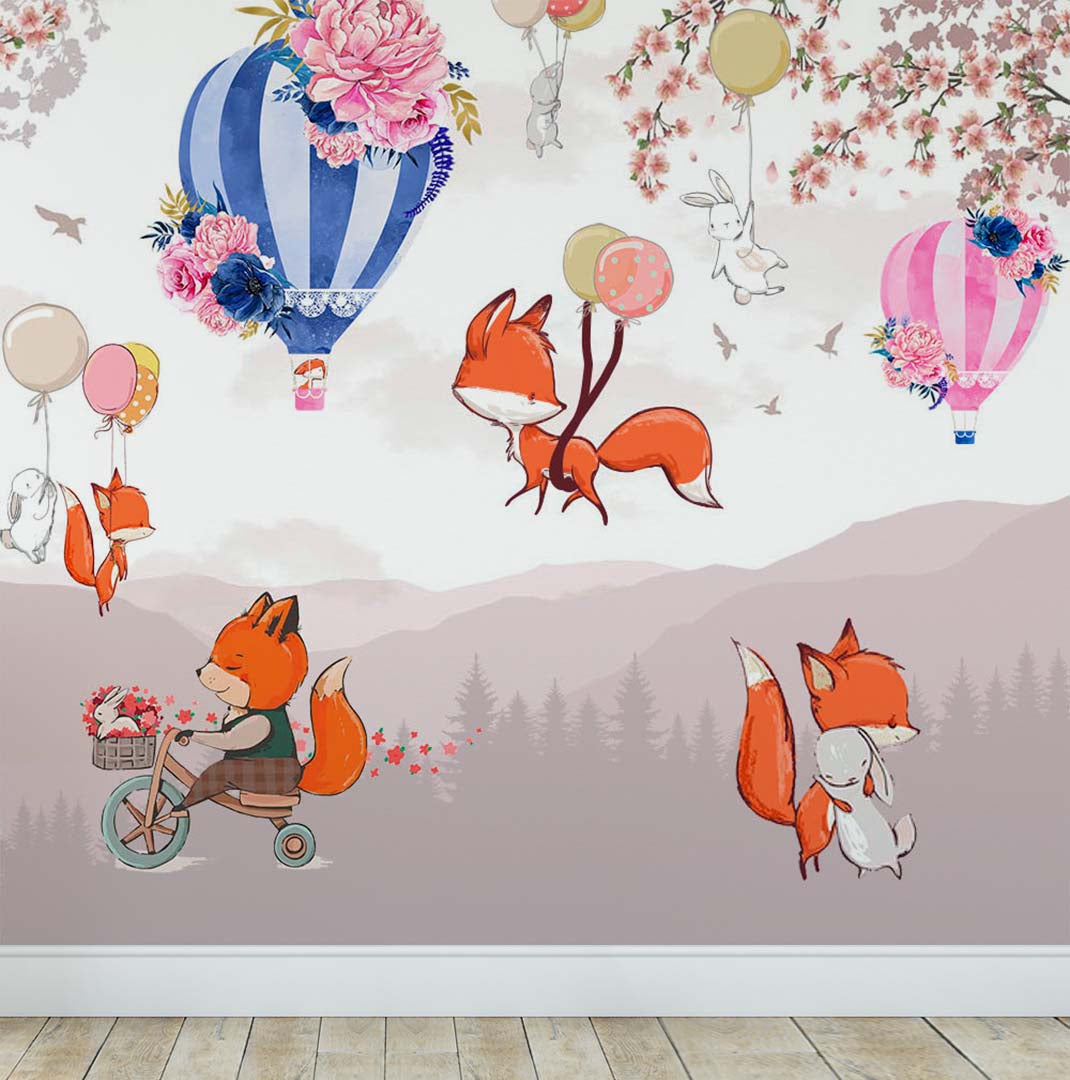 Niestandardowe fototapety dla dzieci góry balony powietrzne śliczne lisy kwiat wiśni piwonia kwiaty tapety dla dzieci