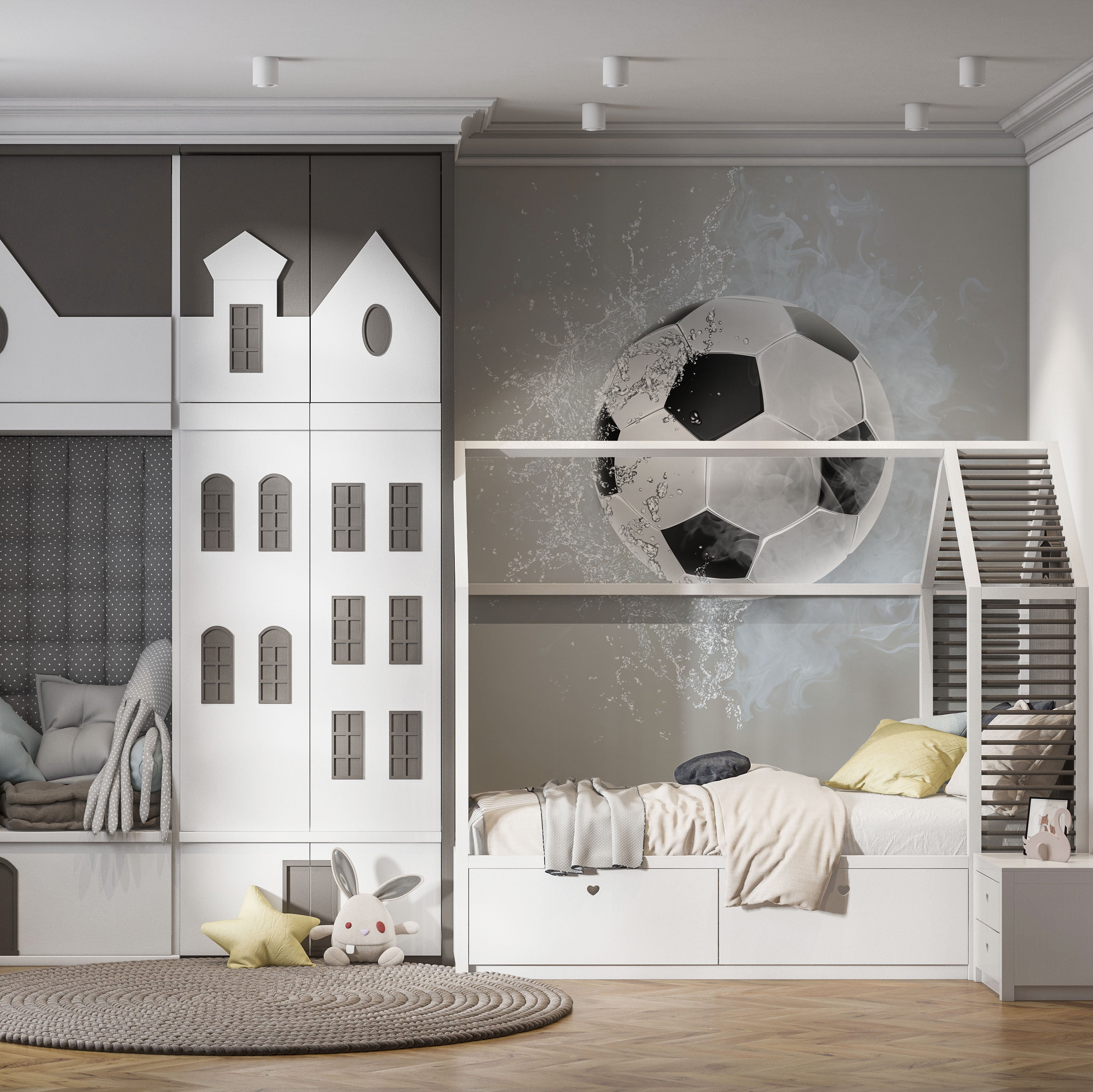 This dynamic wall mural features a classic black and white soccer ball frozen in a moment of action, surrounded by a dramatic splash of water and wisps of smoke. The ball is positioned centrally, creating a sense of focus and energy. The water droplets are captured in intricate detail, adding a sense of realism and movement. The smoke effect adds a touch of mystery and intensity to the scene. The overall composition is visually striking and creates a sense of excitement and dynamism. This mural is perfect for sports enthusiasts, particularly soccer fans, and would be a great addition to a kid's room, teen's room, game room, man cave, or any space where a touch of sporty energy is desired. The contrast between the black and white ball and the surrounding effects creates a visually compelling image that is sure to be a conversation starter. The high-resolution image ensures a crisp and clear print, enhancing the visual impact of the mural. Imagine the thrill of the game brought to life on your walls with this captivating design.