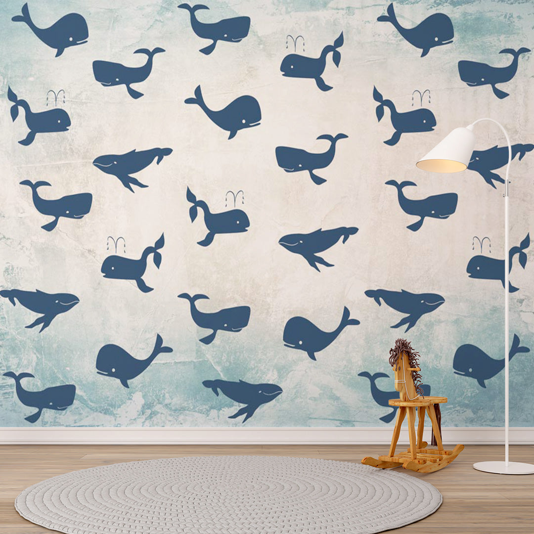 Niestandardowa fototapeta dla dzieci płetwal błękitny sylwetka wzór tapety dla dzieci