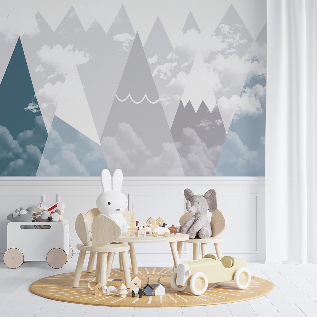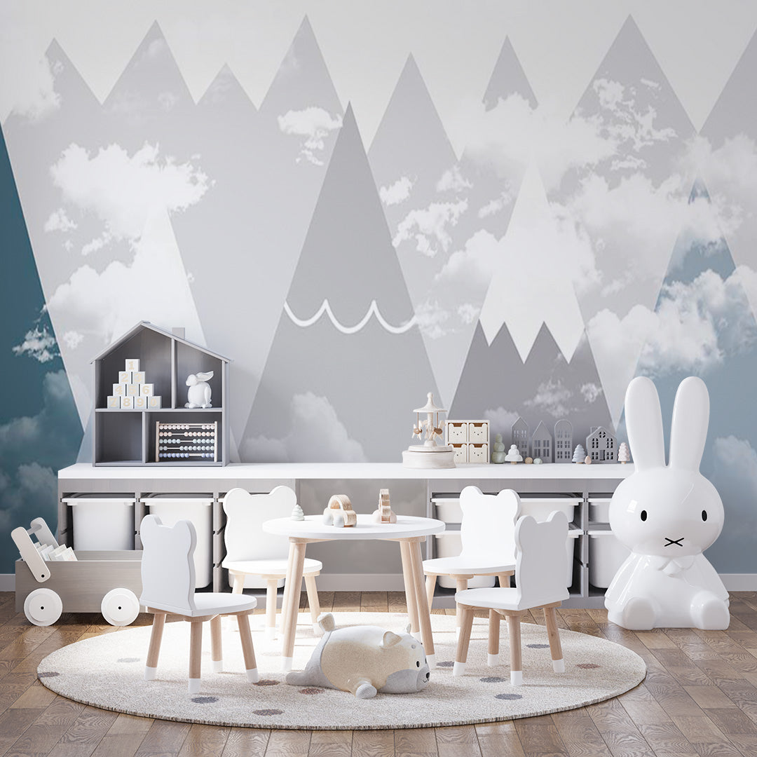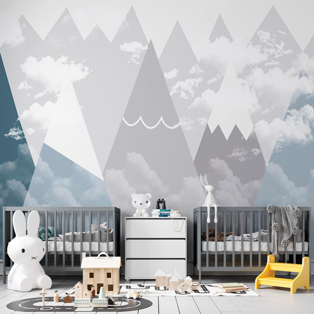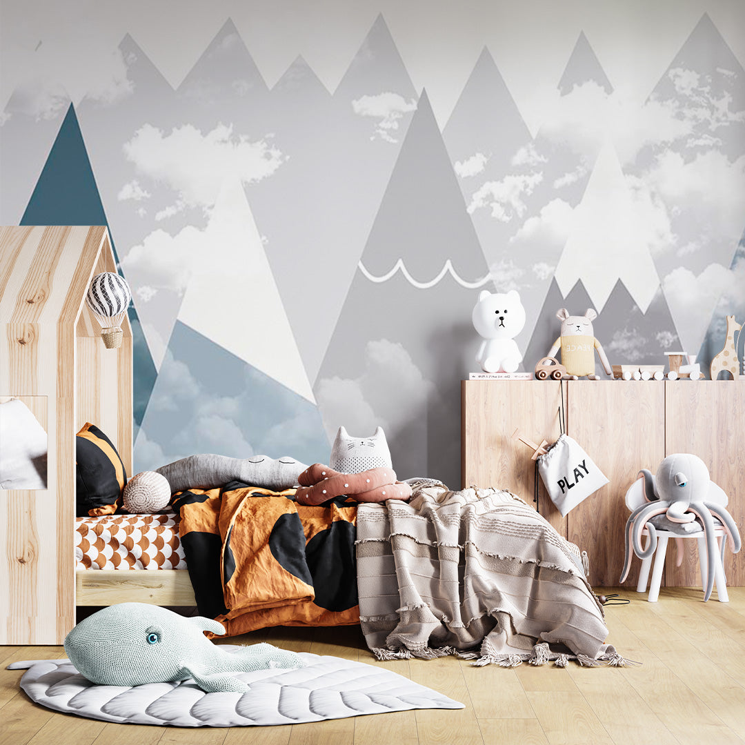 Niestandardowe fototapety dla dzieci skandynawskie pochmurne góry sylwetka prosta tapeta dla dzieci