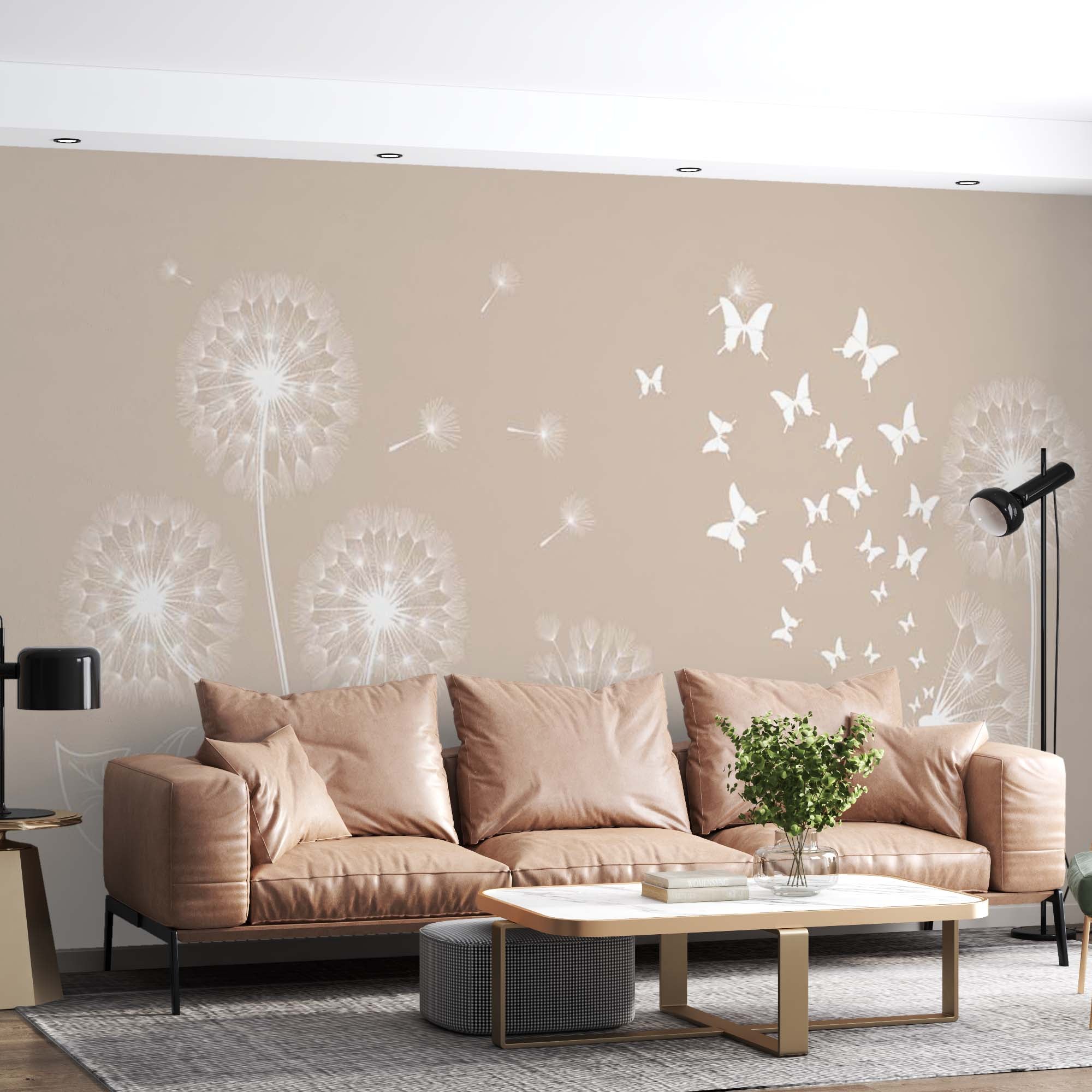 Fototapeta sylwetka mniszka lekarskiego na beżowym tle tapeta w pastelowe kwiaty