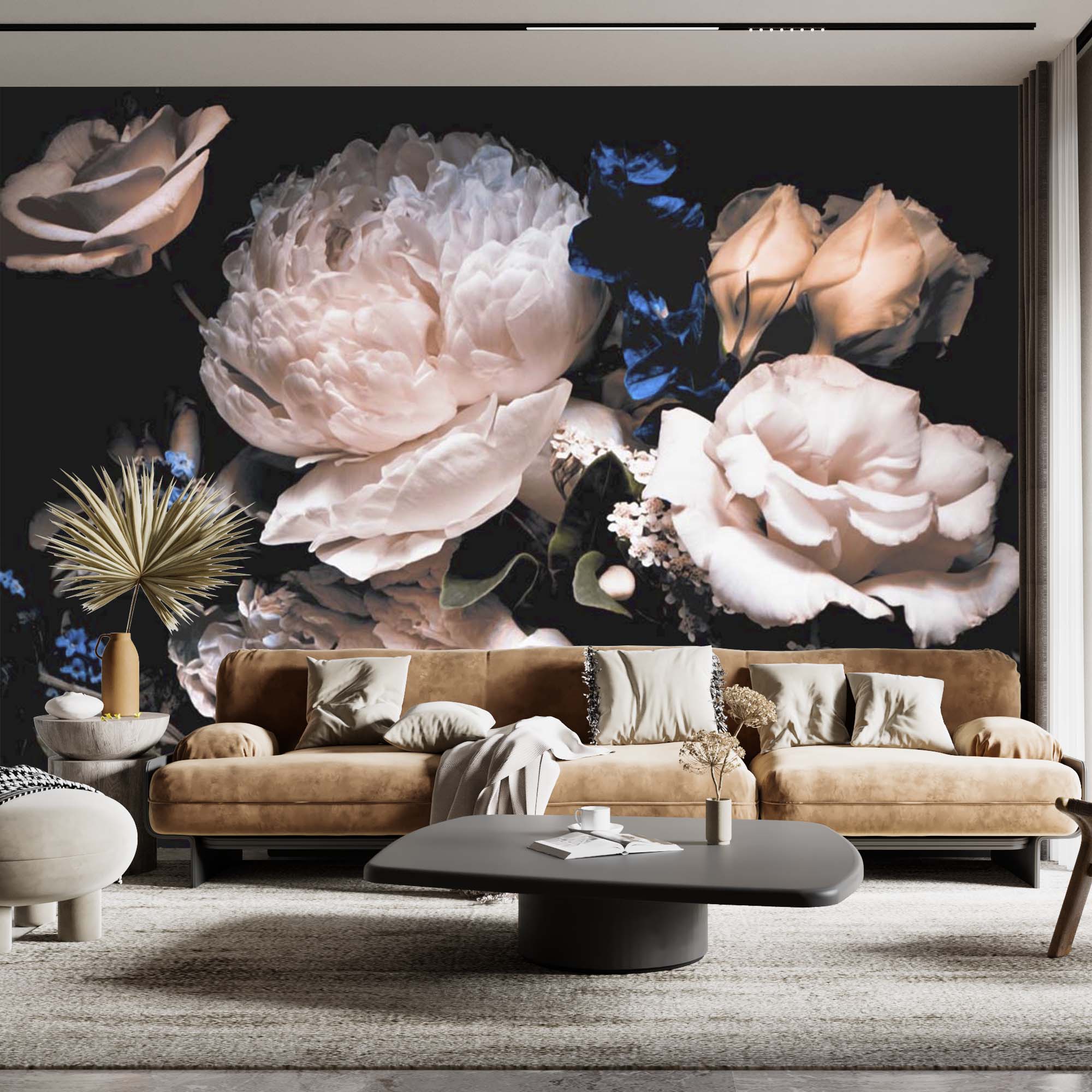 Ta tapeta przedstawia elegancką i szczegółową płaskorzeźbę dużych, rzeźbionych kwiatów i liści. Projekt jest monochromatyczny i ukazuje skomplikowane tekstury i płynne linie elementów botanicznych, które nadają wygląd ręcznie rzeźbionej powierzchni z kamienia lub gliny. Kwiatowe wzory są zarówno kojące, jak i wyrafinowane, dodają odrobinę naturalnego piękna dzięki trójwymiarowemu efektowi, który wnosi głębię i bogactwo do każdej przestrzeni. Idealny do tworzenia spokojnej i stylowej atmosfery.