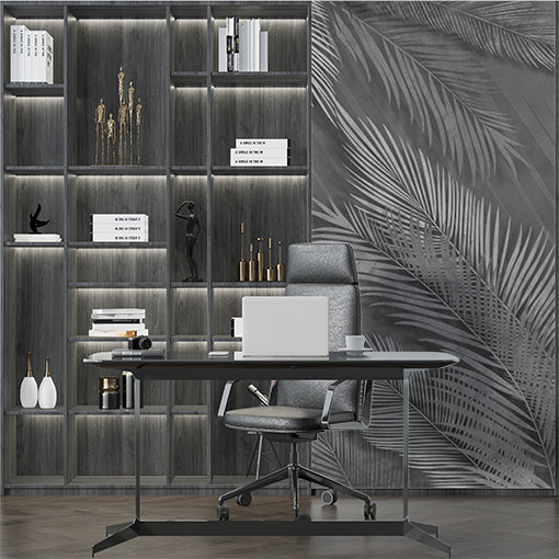 Ciemny fresk tropikalny liść palmy fototapeta monochromatyczna tapeta botaniczna