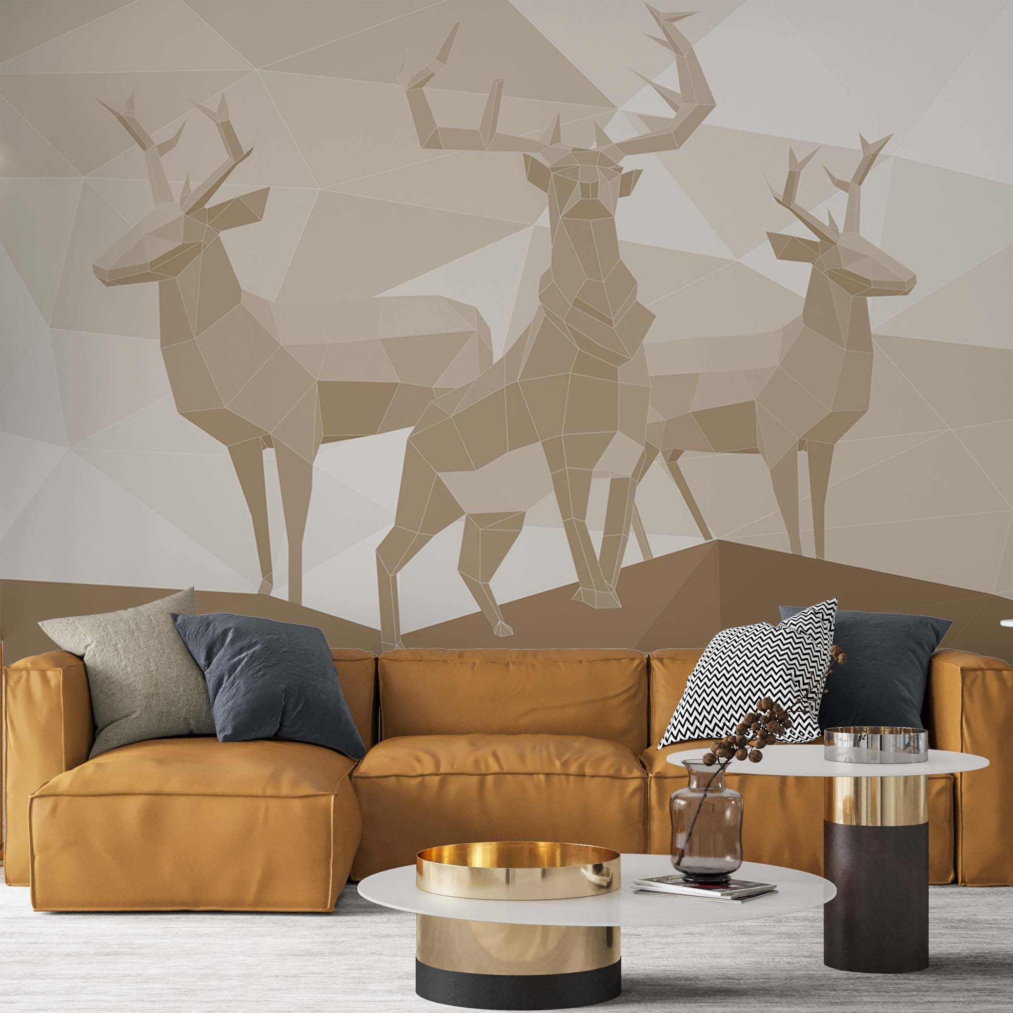 Sylwetka jelenia w beżowym odcieniu z geometrycznym wzorem Tapeta ze zwierzętami Fototapeta