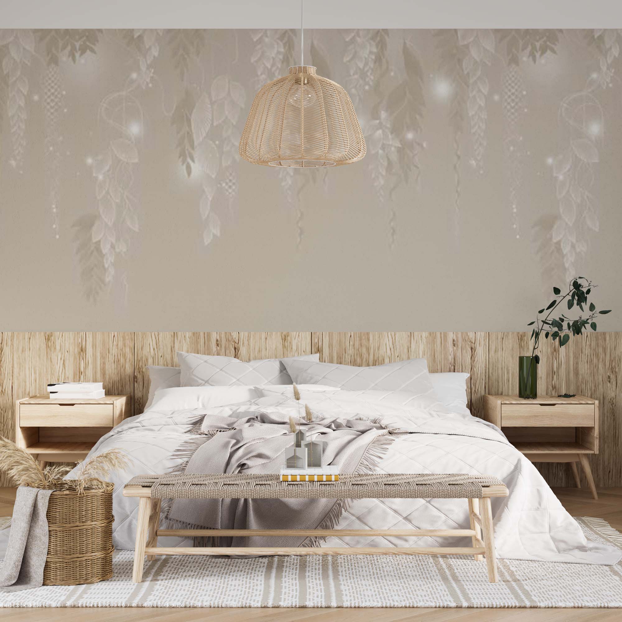 Ta tapeta przedstawia elegancką i szczegółową płaskorzeźbę dużych, rzeźbionych kwiatów i liści. Projekt jest monochromatyczny i ukazuje skomplikowane tekstury i płynne linie elementów botanicznych, które nadają wygląd ręcznie rzeźbionej powierzchni z kamienia lub gliny. Kwiatowe wzory są zarówno kojące, jak i wyrafinowane, dodają odrobinę naturalnego piękna dzięki trójwymiarowemu efektowi, który wnosi głębię i bogactwo do każdej przestrzeni. Idealny do tworzenia spokojnej i stylowej atmosfery.