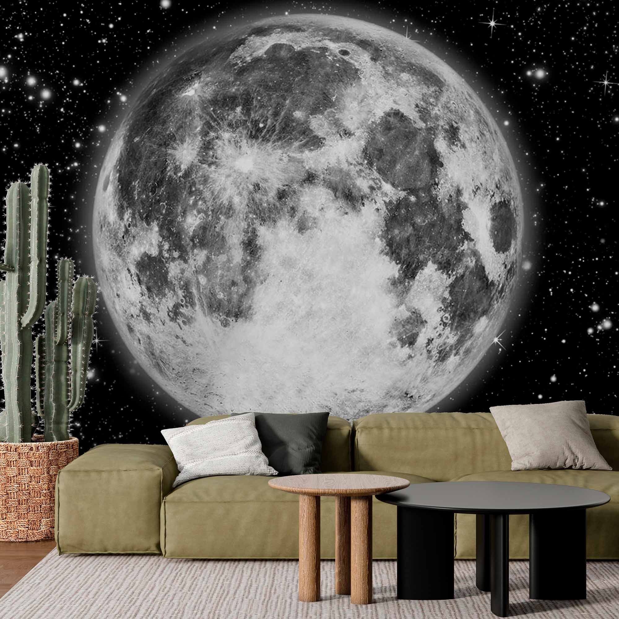 Szczegółowa fototapeta z pełnią księżyca - monochromatyczne nocne niebo z gwiazdami