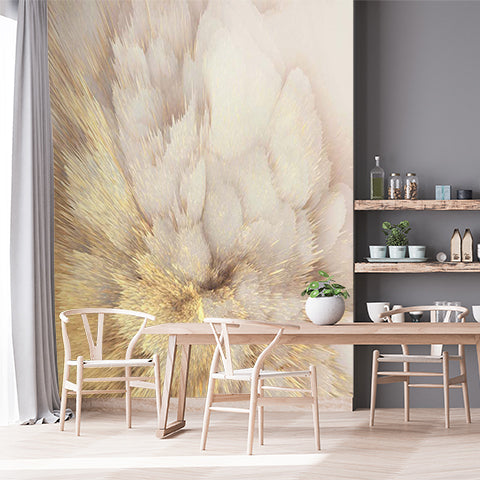 Elegancka abstrakcyjna fototapeta eksplozja - złoty i kremowy projekt artystyczny