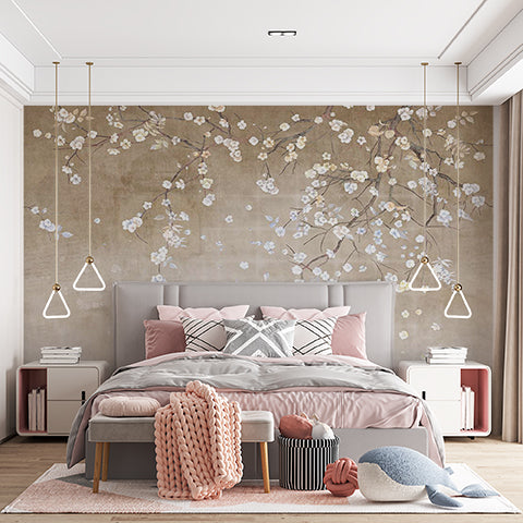 Eleganckie kwitnące gałęzie na antycznej beżowej fototapecie