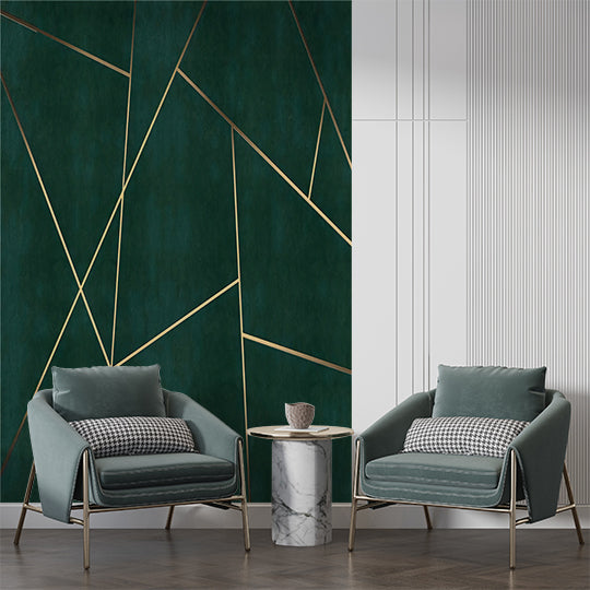 Eleganckie geometryczne złote linie na ciemnozielonej tapecie