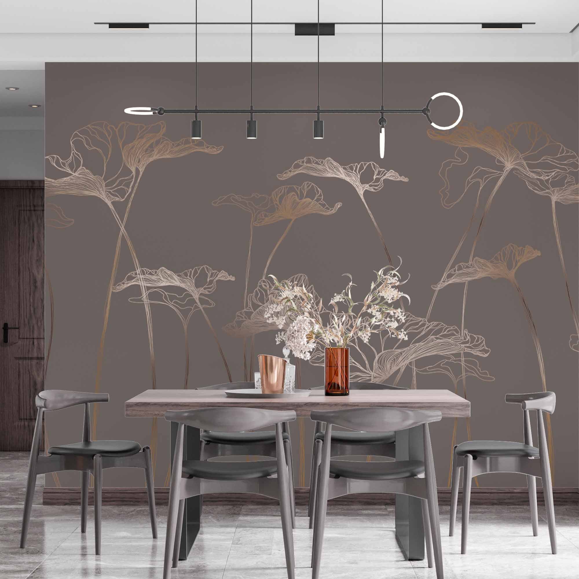 Elegancki złoty zarys kwiatowy fototapeta na miękkim szarym tle