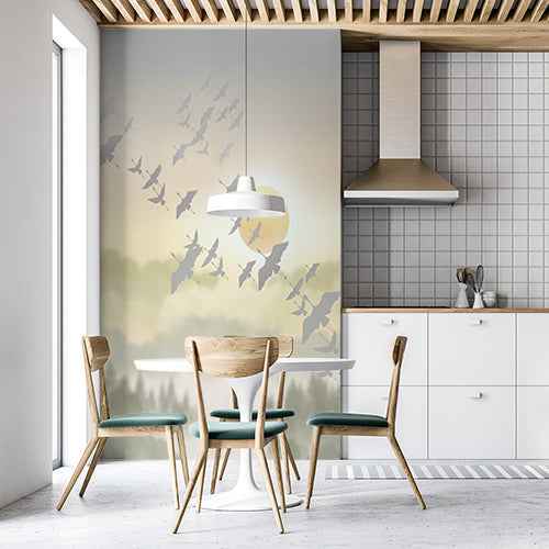 Elegancka tapeta migracyjna ptaków o wschodzie słońca