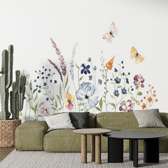 Elegancka tapeta z motywem akwareli, kwiatów i motyli