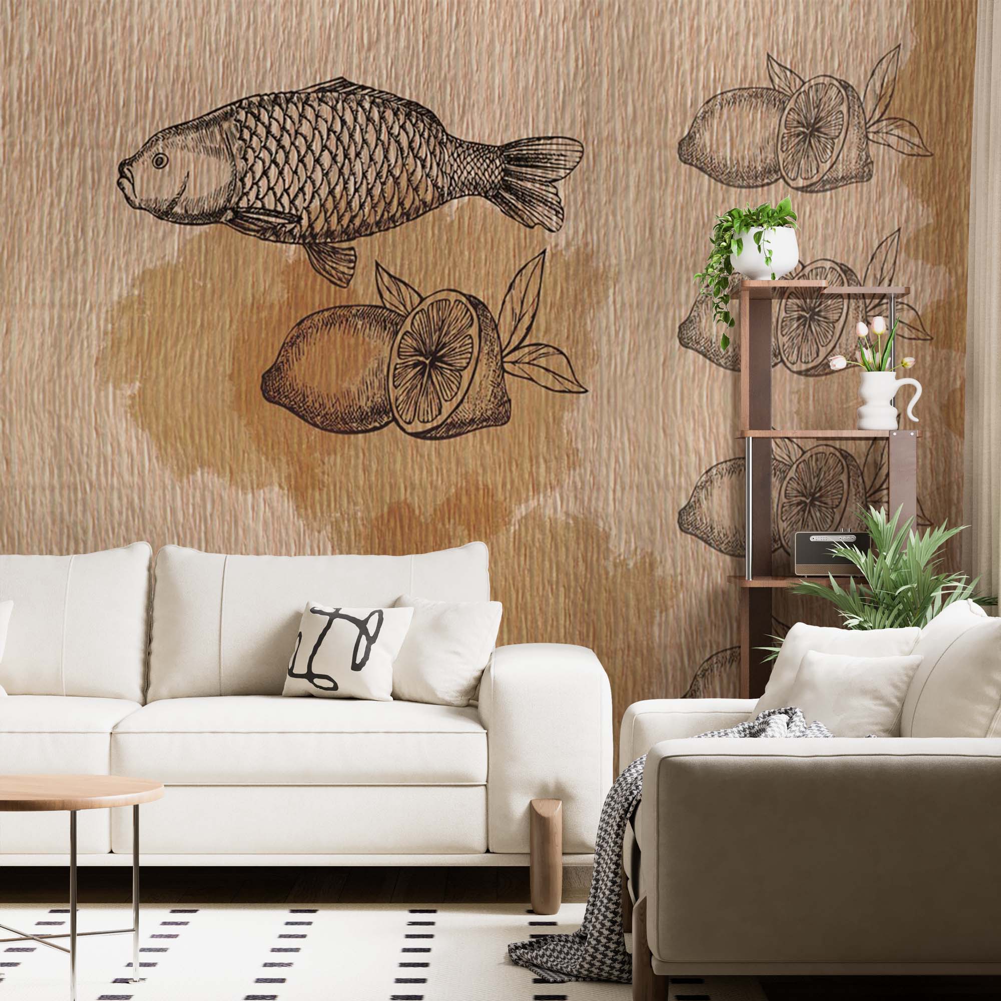 Ryby Cytryny Old Fashion Craft Paper Tekstura Tapety Zwierzęta Fototapeta