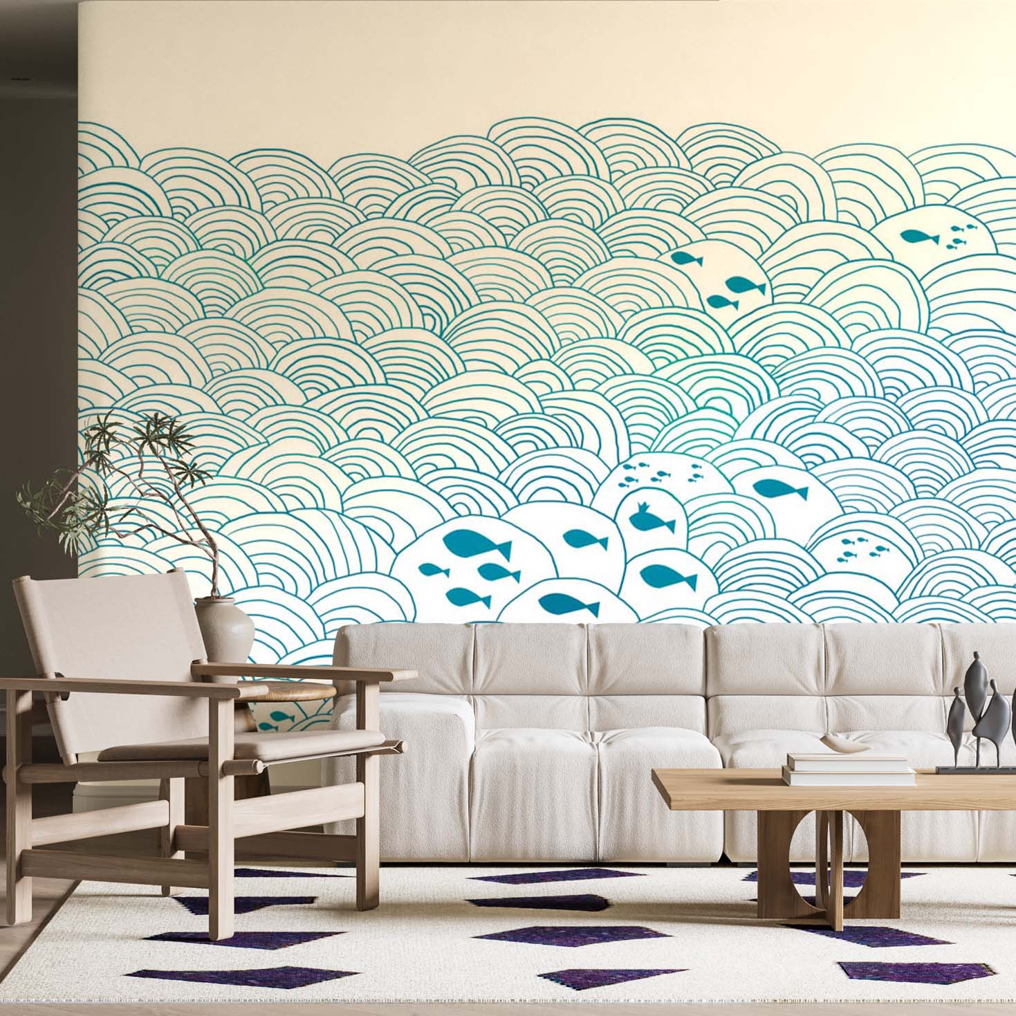 Tapeta rybna Niebieskie fale Skandynawska tapeta