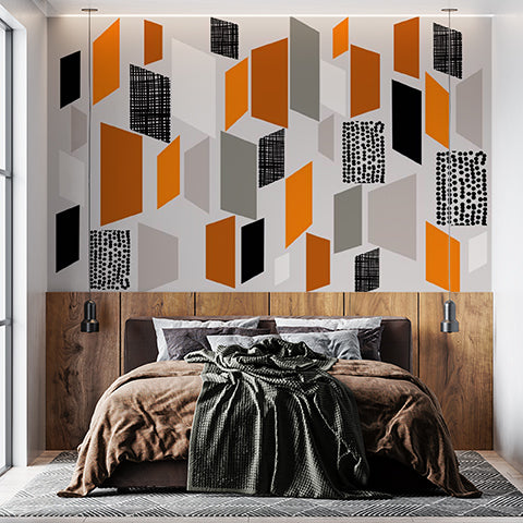 Geometryczna abstrakcyjna fototapeta w kolorze pomarańczowym, czarnym i szarym