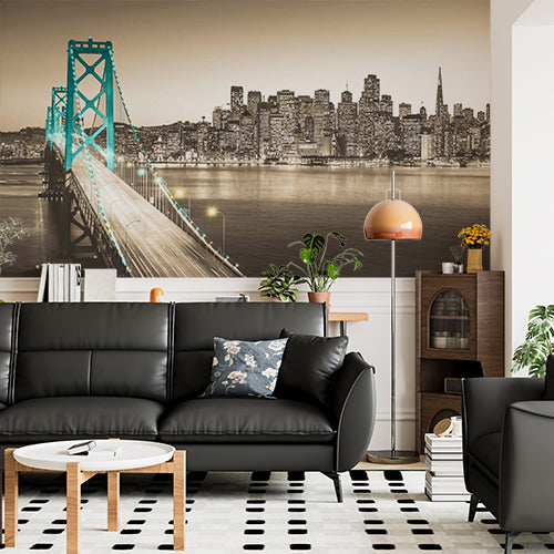 Most Golden Gate nocą Naklejka Tapeta z filtrem sepii