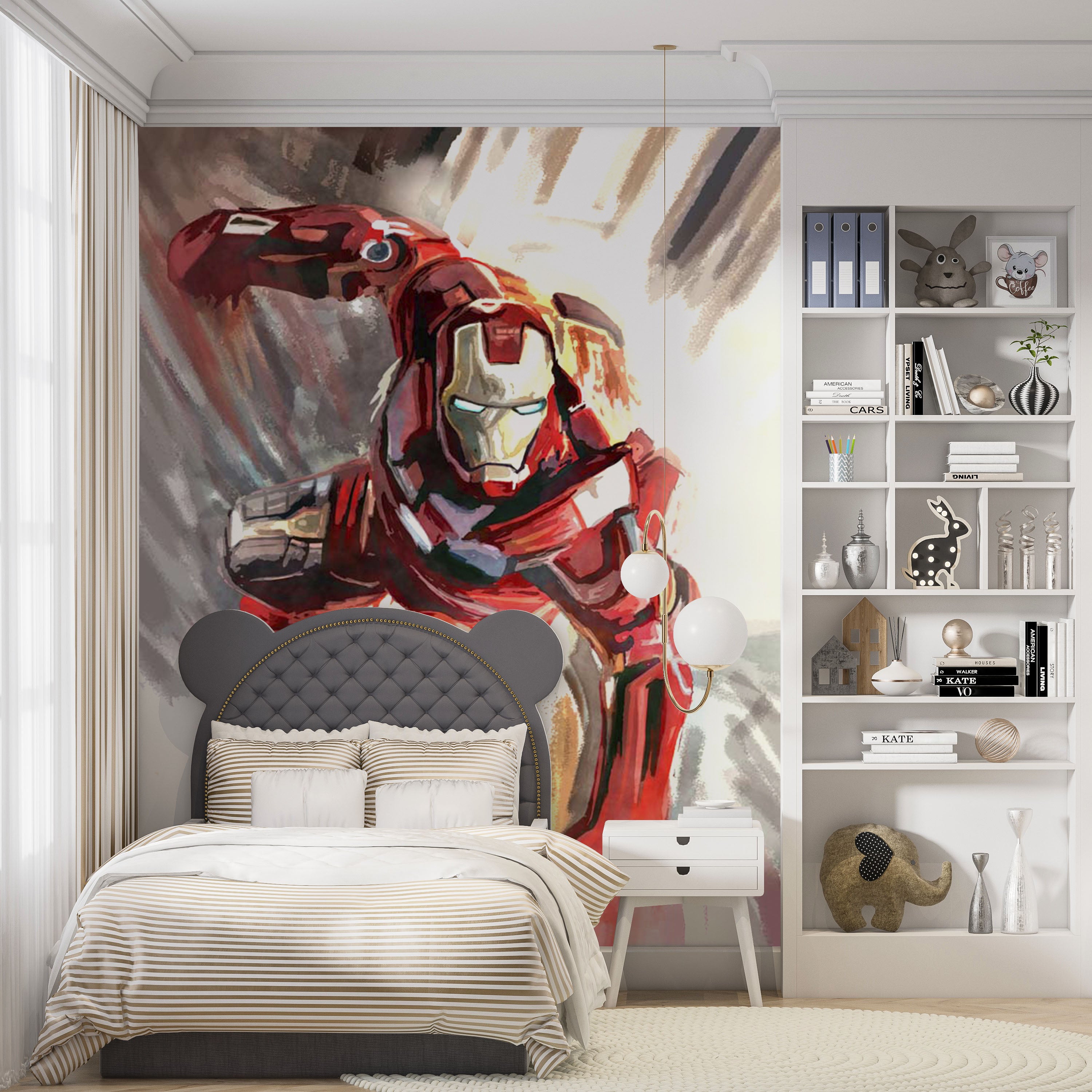 Bring the power of Iron Man to your walls with this dynamic wall mural. Featuring a striking illustration of the iconic superhero in a classic action pose, this mural captures the energy and excitement of the Marvel universe. The artwork is rendered in a vibrant comic book style, with bold lines, expressive brushstrokes, and rich colors. Perfect for kids' rooms, teen hangouts, game rooms, or any space where you want to add a touch of superhero flair. This high-quality mural is printed on durable material for easy installation and long-lasting enjoyment.