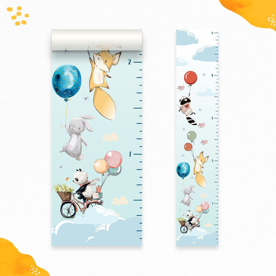 Wykres wzrostu dla dzieci Odklej i przyklej balony na ogrzane powietrze Zwierzęta Lis Króliczek Panda Szop pracz