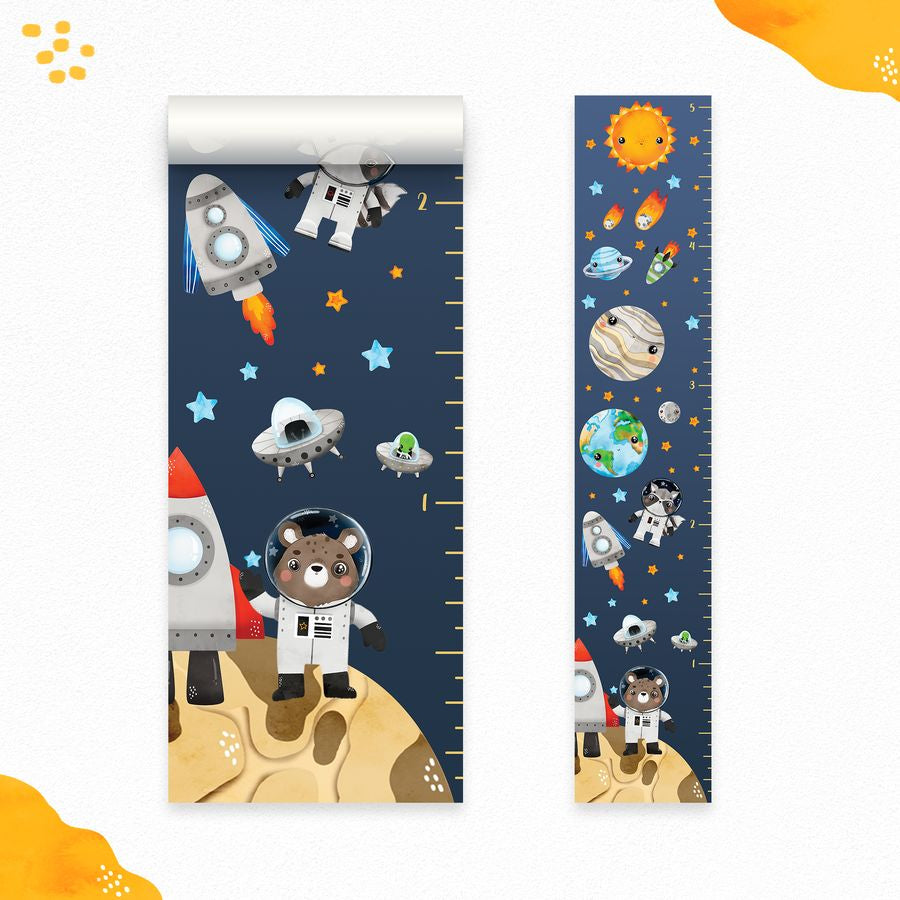 Wykres wzrostu dzieci, odklej i przyklej naklejki z układem słonecznym w kształcie kosmicznych zwierząt