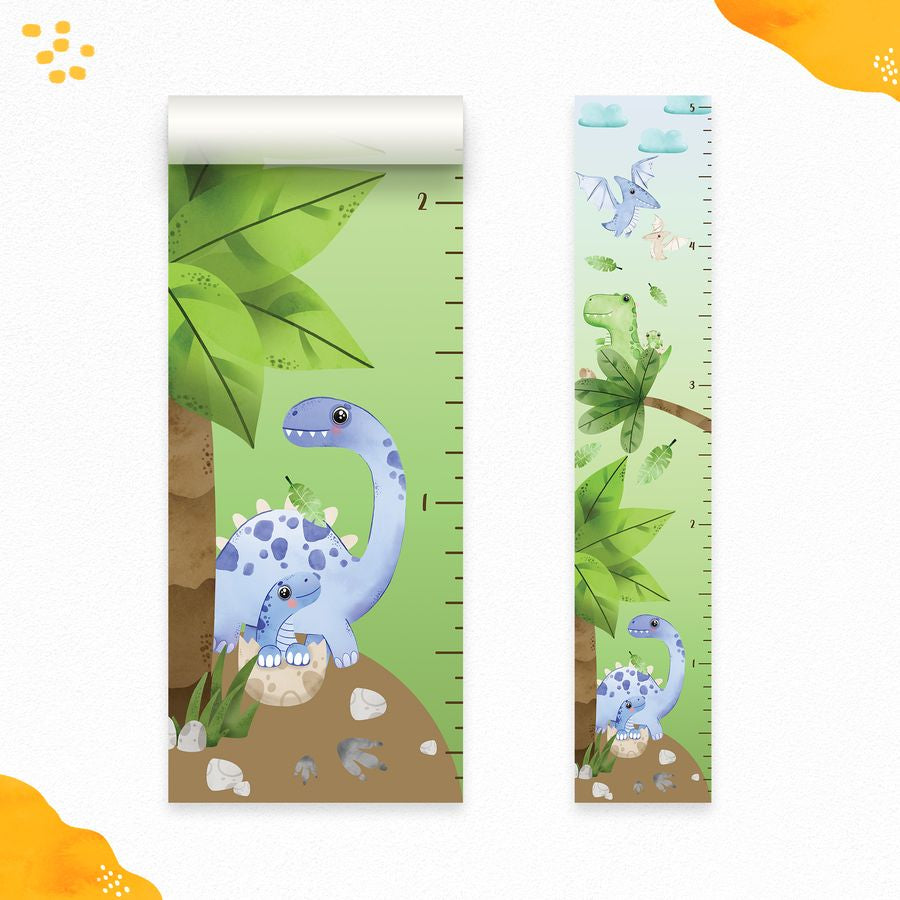 Wykres wzrostu dla dzieci Akwarelowy dinozaur w odklejeniu i przyklejeniu