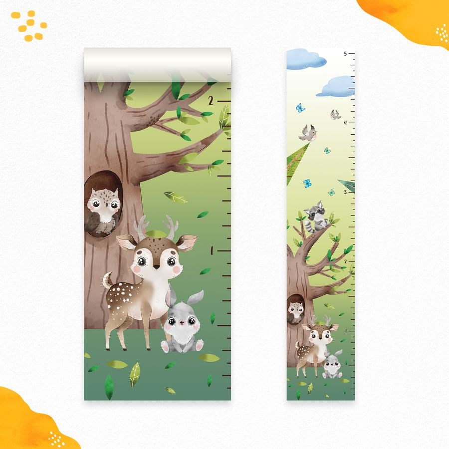 Miarka wzrostu dla dzieci Odklej i przyklej Zwierzęta leśne Króliczek szop pracz sowa